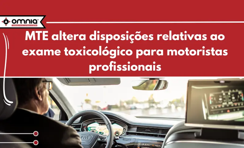 O MTE – Ministério do Trabalho e emprego, publicou no Diário Oficial de hoje, 26-4, a Portaria 612, de 25-4-2024, que altera a Portaria 672 MTP, de 8-11-2021, para regulamentar a aplicação dos exames toxicológicos por motoristas profissionais.