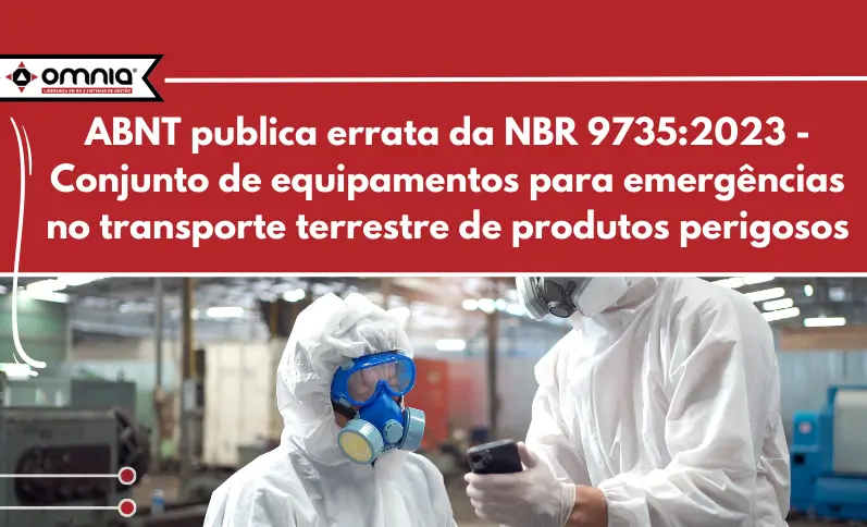 Foi publicada a ABNT NBR 9735:2023 Errata 1:2024 – Conjunto de equipamentos para emergências no transporte terrestre de produtos perigosos, elaborada pelo Comitê Técnico: Transportes e Tráfego (ABNT/CB-01)
