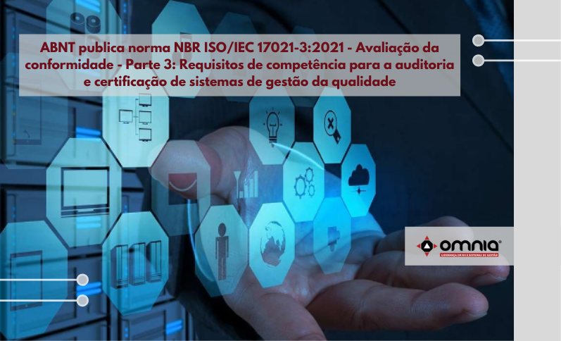 A ABNT publicou a norma ABNT NBR ISO/IEC 17021-3:2021 – Avaliação da conformidade – Requisitos para organismos que fornecem auditoria e certificação de sistemas de gestão – Parte 3: Requisitos de competência para a auditoria e certificação de sistemas de gestão da qualidade, elaborada pelo Comitê Brasileiro da Qualidade (ABNT/CB-025).