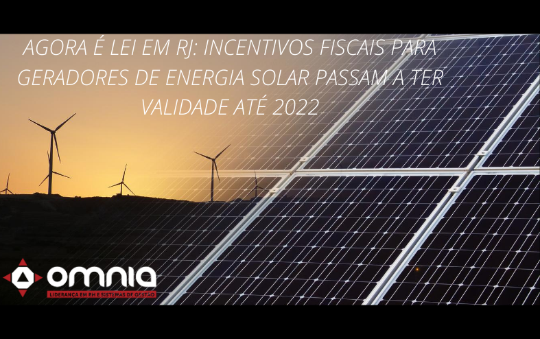 A Lei 8.922/20 , que determina incentivos fiscais para geradores de energia solar, passa a ter validade até 31 de dezembro de 2022. É o que determina a Lei 8.990/20, que foi sancionada pelo governador Wilson Witzel e publicada no Diário Oficial desta quinta-feira (27/08). A medida é de autoria dos deputados André Ceciliano (PT) e Luiz Paulo (PSDB).