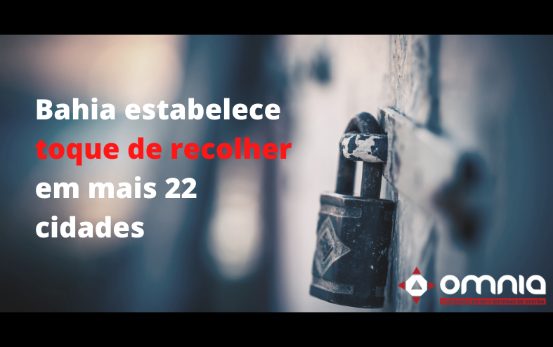 Mais 22 cidades baianas terão toque de recolher a partir do próximo domingo (26). A medida passa a vigorar em América Dourada, Barra do Mendes, Barro Alto, Bonito, Cafarnaum, Canarana, Central, Gentio do Ouro, Ibipeba, Ibititá, Irecê, Itaguaçu da Bahia, João Dourado, Jussara, Lapão, Morro do Chapéu, Mulungu do Morro, Presidente Dutra, Presidente Jânio Quadros, São Gabriel, Tapiramutá e Uibaí, de acordo com publicação que será feita no Diário Oficial do Estado (DOE) deste sábado (25).