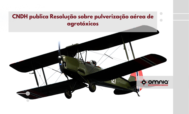 Foi publicada, no Diário Oficial da União da última quarta-feira, a Resolução nº 24, de 16 de setembro de 2022, com o intuito de dispor sobre a pulverização de agrotóxicos por aeronaves para prevenção e reparação de violações de direitos humanos.