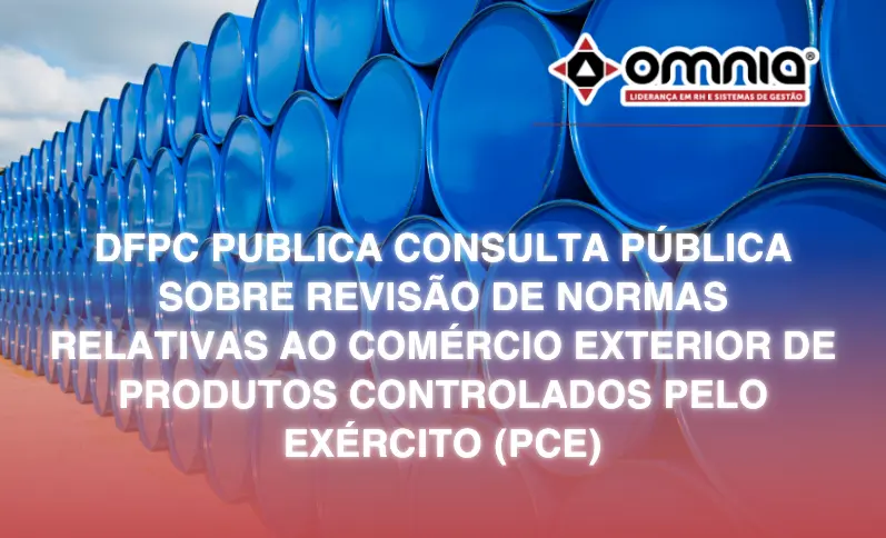 O Diretor de Fiscalização de Produtos Controlados do Exército, no uso das atribuições previstas no Regulamento do Comando Logístico (Portaria – C Ex nº 2039/2023), nas Instruções Gerais para a Fiscalização de Produtos Controlados (Portaria nº 1.757/2022), no Regulamento de Produtos Controlados (Decreto nº 10.030/2019) e no Decreto nº 10.411/2020, publicou a Consulta Pública nº 01/2025, que trata da revisão das Normas Reguladoras dos procedimentos administrativos relativos ao Comércio Exterior de Produtos Controlados pelo Exército (PCE).