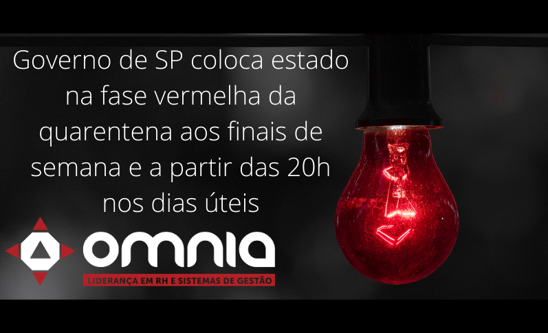 Fase vermelha do plano de flexibilização econômica aos finais de semana e feriados. Nos dias úteis, a fase vermelha valerá das 20h às 6h.
