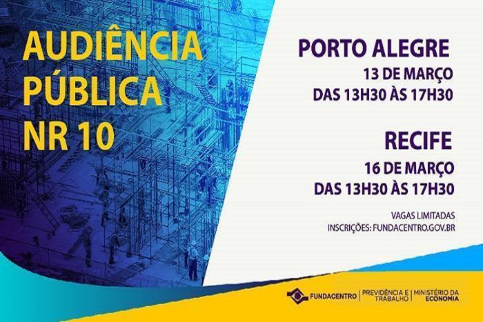 Depois de uma primeira Audiência Pública com casa cheia em São Paulo, as regiões Sul e Nordeste terão encontros para discutir a revisão da Norma Regulamentadora 10 (NR 10) organizados pela Fundacentro em conjunto com Secretaria do Trabalho do Ministério da Economia e da Subsecretaria de Inspeção do Trabalho – (SIT). Os eventos permitem que haja debate com especialistas, representantes governamentais, de trabalhadores e de empregadores e com a população em geral, promovendo a ampla participação da sociedade no processo.