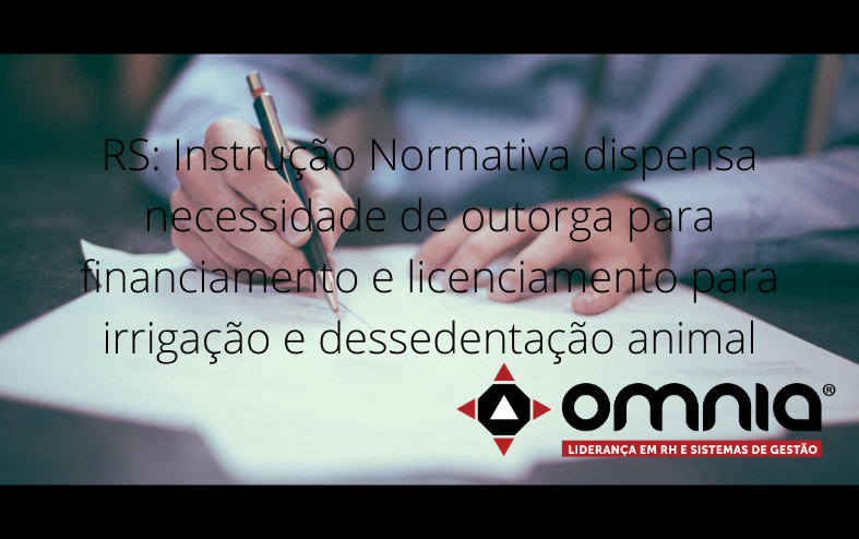 A Secretaria Estadual do Meio Ambiente e Infraestrutura (Sema) publicou a Instrução Normativa (IN) n° 3 de 2021, que dispensa a necessidade de outorga do uso da água para solicitar financiamento e licenciamento ambiental para as atividades de irrigação e dessedentação animal na safra 2021/2022. A isenção, no entanto, é permitida exclusivamente nos casos em que o empreendedor já tenha realizado o pedido de outorga ou a dispensa da mesma no Sistema de Outorga de Água (SIOUT).