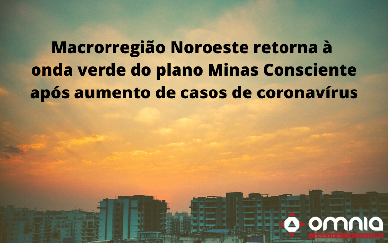 A macrorregião de Saúde Noroeste vai retornar à onda verde do plano Minas Consciente, criado pelo Governo de Minas para promover a retomada econômica gradual e coordenada nas cidades mineiras durante a pandemia do coronavírus. A recomendação é a de que as 33 cidades da localidade abram somente serviços considerados essenciais, como supermercados, padarias e farmácias.