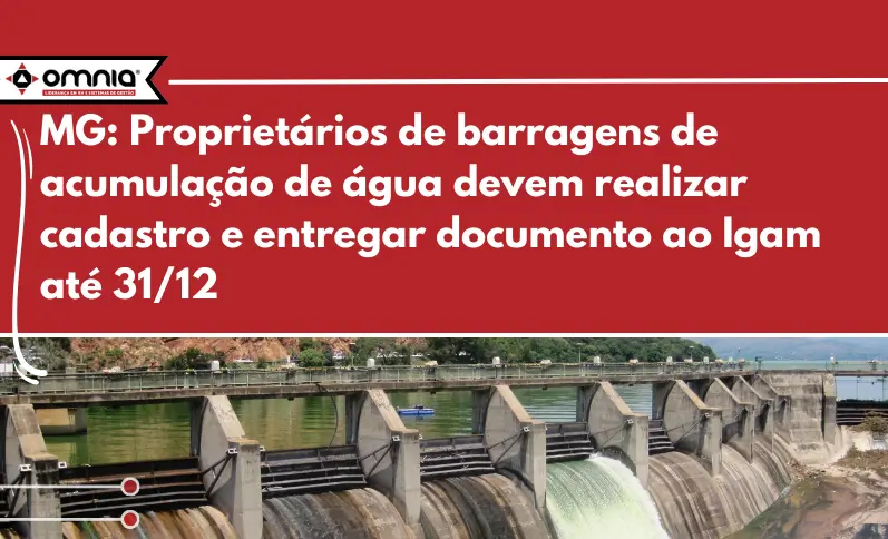 O Instituto Mineiro de Gestão das Águas (Igam) alerta os usuários de recursos hídricos que possuem barragens de acumulação de água, em rios de domínio estadual e que não gerem energia hidrelétrica, para o fim do prazo de cadastramento de barragens, que se encerra no dia 31 de dezembro. Está em vigor a portaria Igam nº 08/2023, que atualizou os prazos e estabeleceu a obrigatoriedade do cadastro, que deve ser realizado por meio do Sistema Eletrônico de Informações (SEI), de forma gratuita, conforme manual de cadastro. Até 31/12/2023. Devem ser cadastradas as barragens com volume total do reservatório entre 150.000 e 250.000 mil m³.