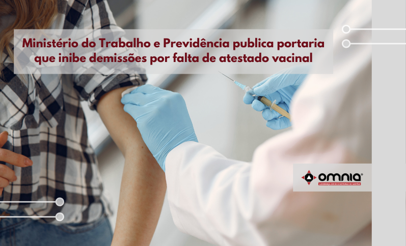 O Ministério do Trabalho e Previdência publicou no dia 01/11, em edição extra do Diário Oficial da União (DOU), a Portaria nº 620 que inibe empresas de demitir, ou deixar de contratar, empregados em virtude de não apresentação de certificado de vacinação contra a Covid.