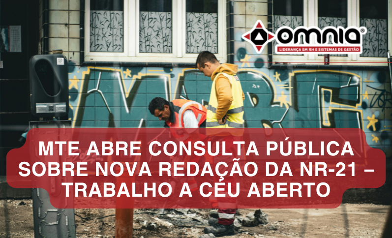 O Ministério do Trabalho e Emprego (MTE) abriu, nesta terça-feira (11/06), consulta pública para revisão da Norma Regulamentadora nº 21 (NR-21), que trata do Trabalho a Céu Aberto. A proposta de novo texto técnico está disponível para contribuições até o dia 28 de julho de 2025, exclusivamente pelo portal Participa + Brasil.