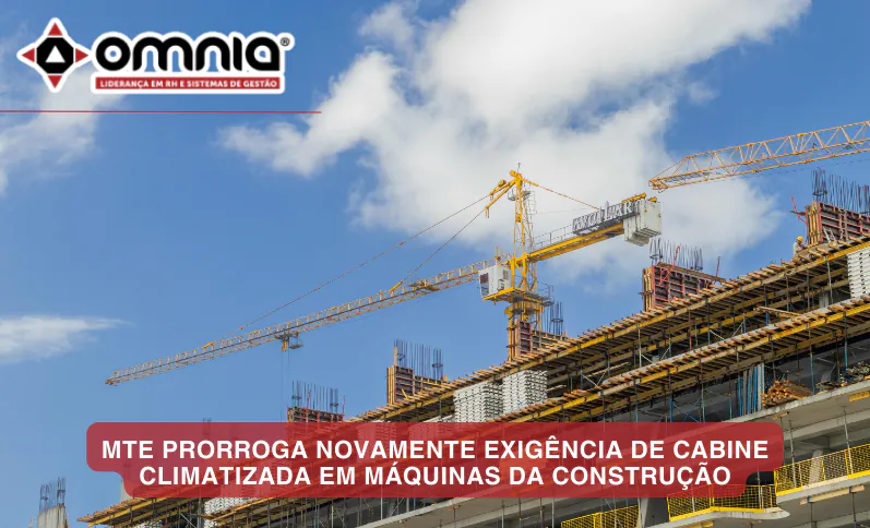 O Ministério do Trabalho e Emprego (MTE) prorrogou para 11 de fevereiro de 2027 o início da vigência da obrigatoriedade de cabine climatizada prevista no item 18.10.1.13 da Norma Regulamentadora nº 18 (NR-18), que trata das condições de segurança e saúde no trabalho na indústria da construção.