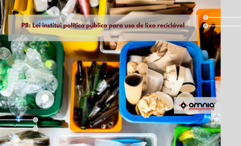Lei publicada no Diário Oficial do Estado desta quarta-feira (8) institui a política pública Paraíba Lixo Zero, que trata da redução do despejo de lixo reciclável no meio ambiente e uso desses materiais em projetos de arquitetura sustentável e energia renovável.
