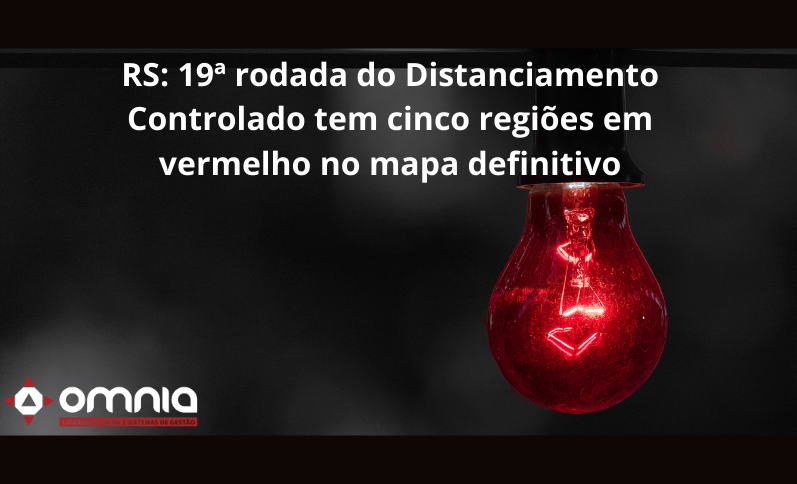 O mapa definitivo da 19ª rodada do Distanciamento Controlado traz cinco regiões em bandeira vermelha (risco epidemiológico alto). As outras 16 regiões Covid estão em bandeira laranja (risco epidemiológico médio). O Gabinete de Crise analisou os oito recursos enviados por associações de municípios e regiões e deferiu o pedido de duas delas.