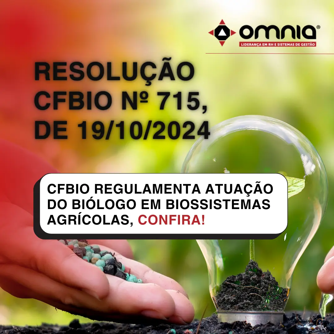 Foi publicada no DOU (23), a Resolução CFBio nº 715, de 19/10/2024, que normatiza a atuação do(a) Biólogo(a) em Biossistemas Agrícolas.