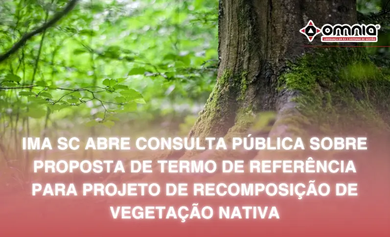 O Instituto do Meio Ambiente de Santa Catarina (IMA) comunica que abriu até dia 18 de dezembro de 2024 o prazo para receber sugestões e comentários internos e externos sobre a proposta de Termo de Referência (TR) para Projeto de Recomposição de Vegetação Nativa, o qual constará como anexo da Instrução Normativa n°16 – Recuperação de Áreas Degradadas.