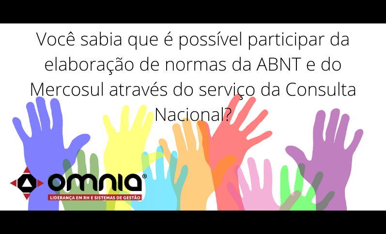 A consulta nacional da ABNT é um serviço que permite que você acesse, visualize, imprima e apresente sugestões aos Projetos de Norma da ABNT e do Mercosul totalmente online, através do site https://www.abntonline.com.br/consultanacional/.